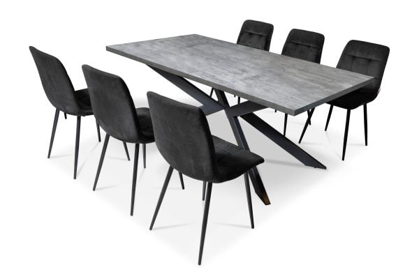 פינת האוכל עשויה MDF בציפוי למינציה דמוי שיש לבן , ורגלי השולחן עשויות מתכת עם שכבת פלסטיק המגינה על הרגליות למניעת שחיקה.