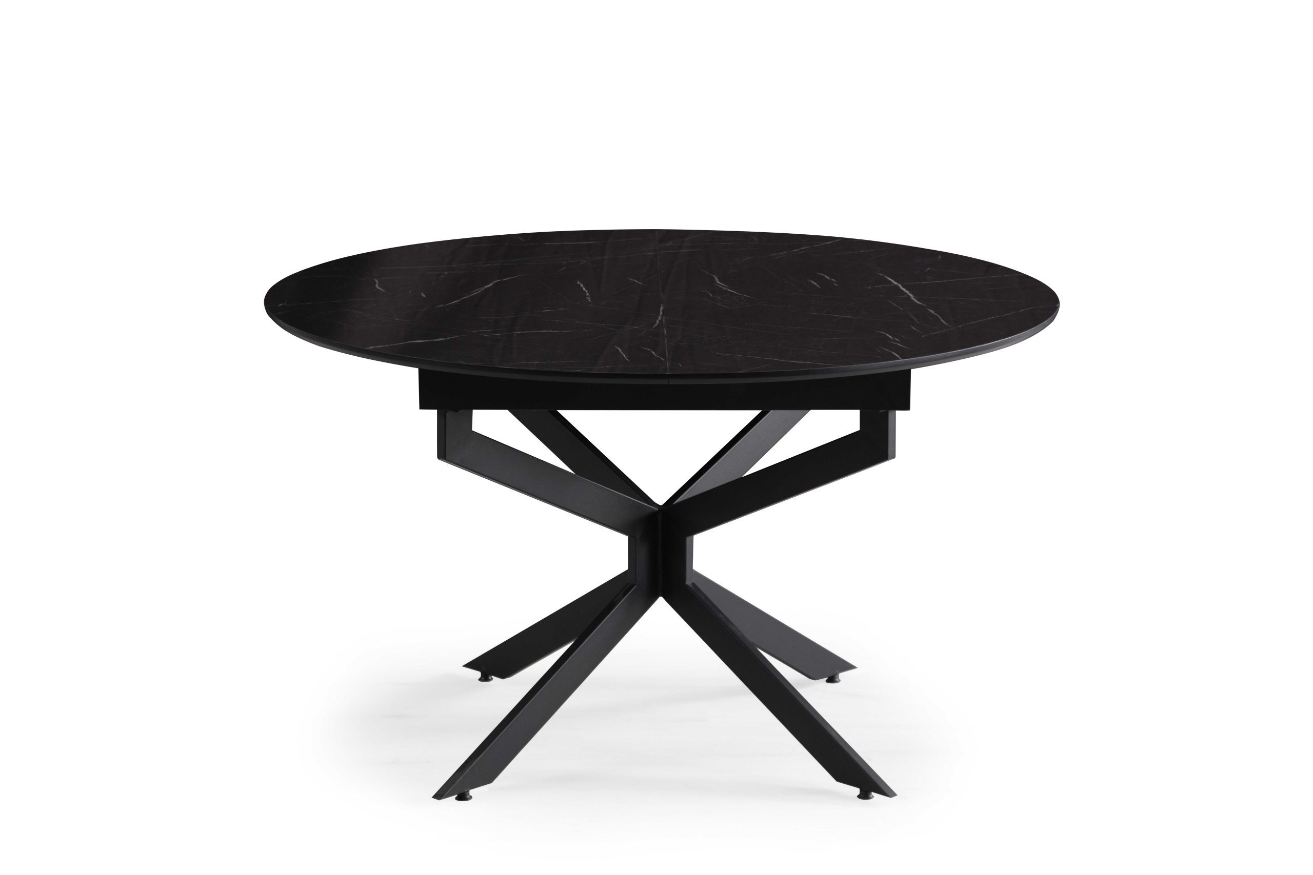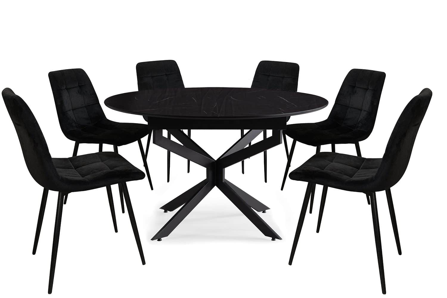 פינת אוכל עגולה נפתחת דמוי שיש שחור מבריק דגם לונה + 6 כסאות – 8 סועדים